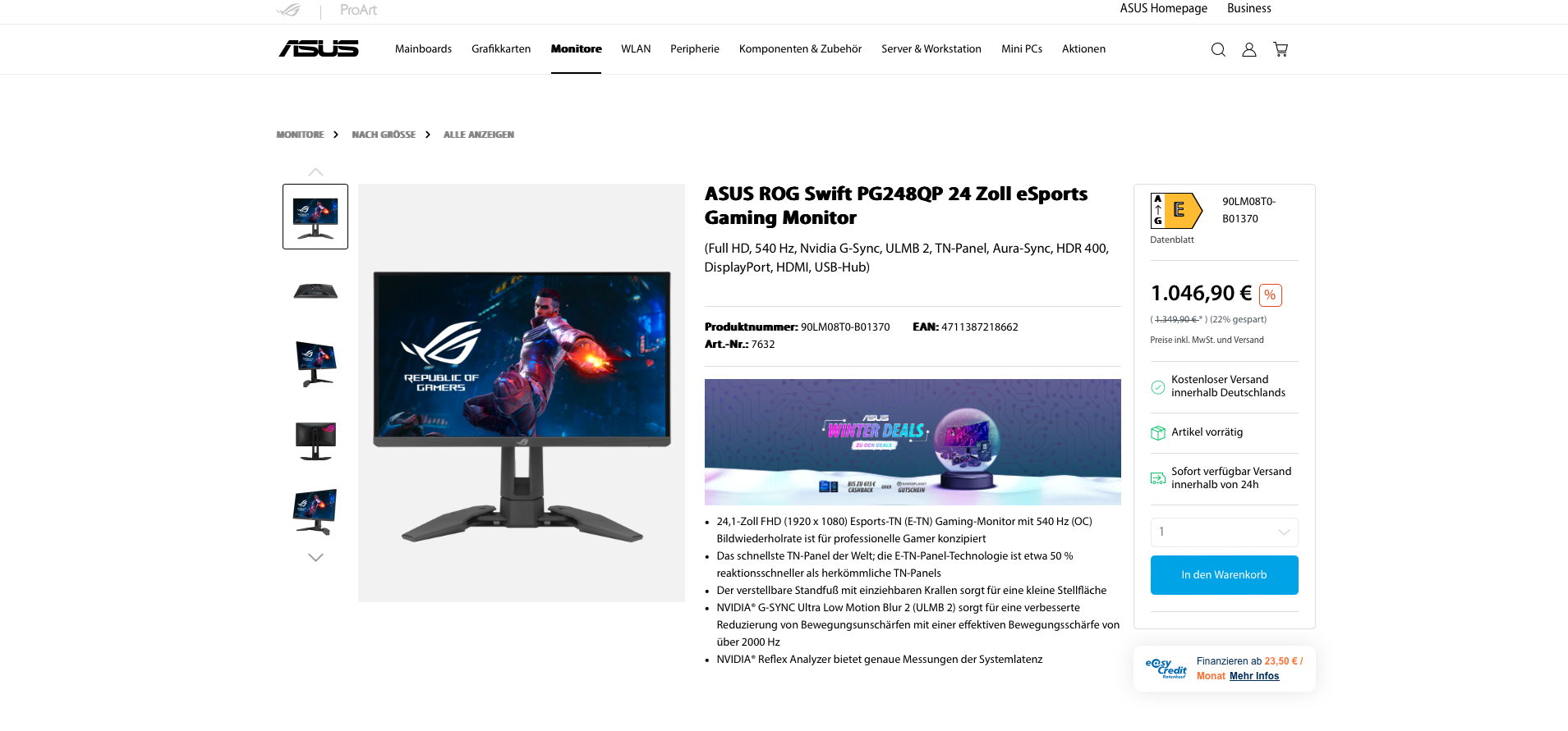 ASUS ROG Swift Pro PG248QP met 520Hz scherm is nu verkrijgbaar in de VS en Europa