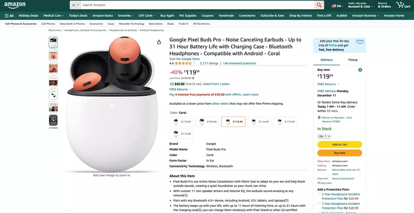 Google Pixel Buds Pro kunnen worden gekocht op Amazon met een korting van $80