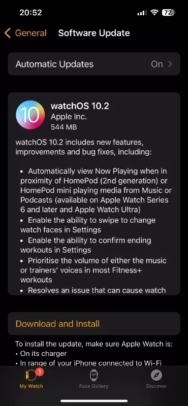 De update is uitgebracht onder de naam watchOS 10.2. De firmware weegt 544 MB en bevat veel kleine maar nuttige veranderingen. Apple heeft bijvoorbeeld de mogelijkheid teruggebracht om van wijzerplaat te wisselen door naar links of rechts te vegen. De functie is ingeschakeld in de apparaatinstellingen. Daarnaast hebben de ontwikkelaars van het bedrijf de spraakassistent Siri toegang gegeven tot gezondheidsgegevens (werkt alleen op Apple Watch Series 9 en Apple Watch Ultra 2) en een probleem opgelost waardoor gezichten die aan de Watch-app op de iPhone waren toegevoegd niet op de Apple Watch verschenen.