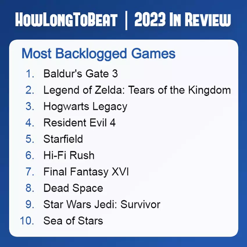 Portal HowLongToBeat heeft de top 10 samengesteld van games die gamers het vaakst opzij leggen in de "lange doos" (Backlogged Games) in 2023.