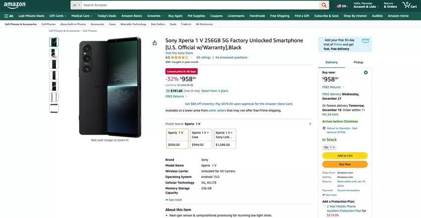 Korting $441: Sony Xperia 1 V vlaggenschip kan worden gekocht op Amazon tegen een promotieprijs