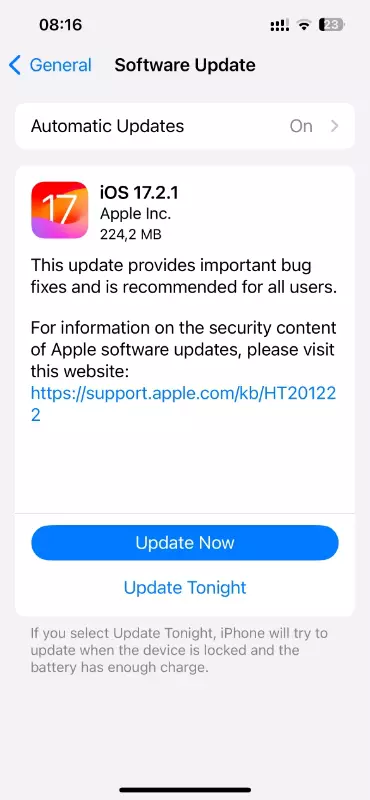 De firmware is uitgekomen onder de naam iOS 17.2.1. Dit is een kleine update, waarin de ontwikkelaars bugs hebben verholpen. Daarnaast heeft Apple gewerkt aan de beveiliging van de apparaten.