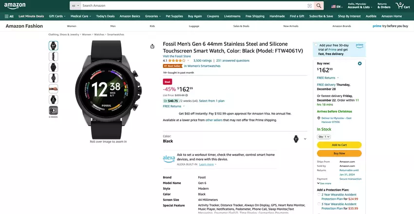 - Fossil Gen 6 44 mm, Stainless Steel - $199.00.