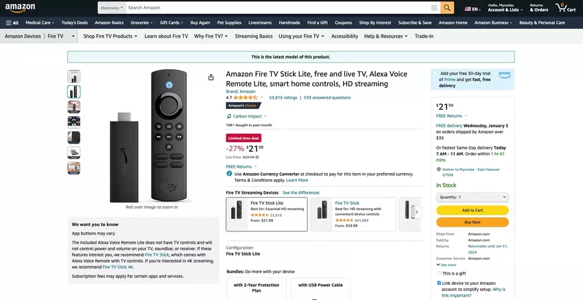 Amazon heeft de prijs van de Fire TV Stick Lite verlaagd.