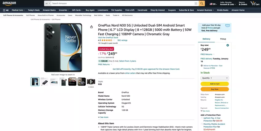 OnePlus Nord N30 5G op Amazon: smartphone met 120Hz-scherm, Snapdragon 695-chip en 108MP camera met $50 korting
