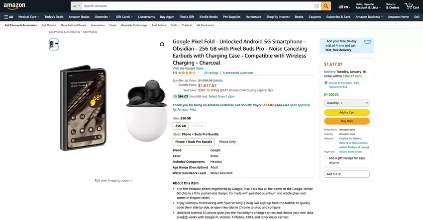Samen goedkoper: Google Pixel Fold en Pixel Buds Pro bundel koop je op Amazon met een korting van $381