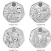 Er zijn twee versies van de numismatische stukken beschikbaar: de met gekleurd glazuur versierde en de onversierde. De vier munten kosten respectievelijk £84 en £48,00.