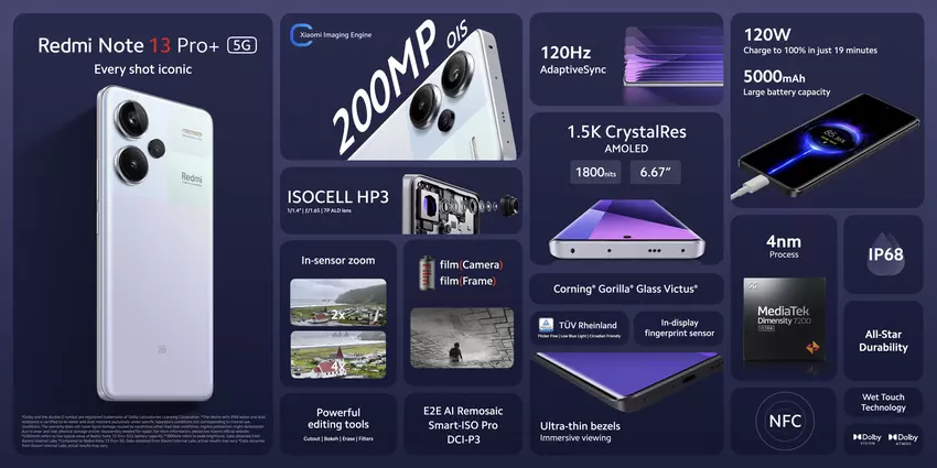 Redmi Note 13 Pro+ met 200 MP camera, MediaTek Dimensity 7200 Ultra-chip en 120 W opladen is uitgebracht in Europa