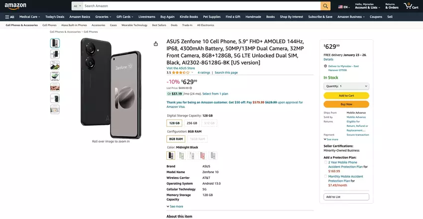 ASUS Zenfone 10 op Amazon: compact vlaggenschip met IP68-bescherming en Snapdragon 8 Gen 2-chip voor $90 korting