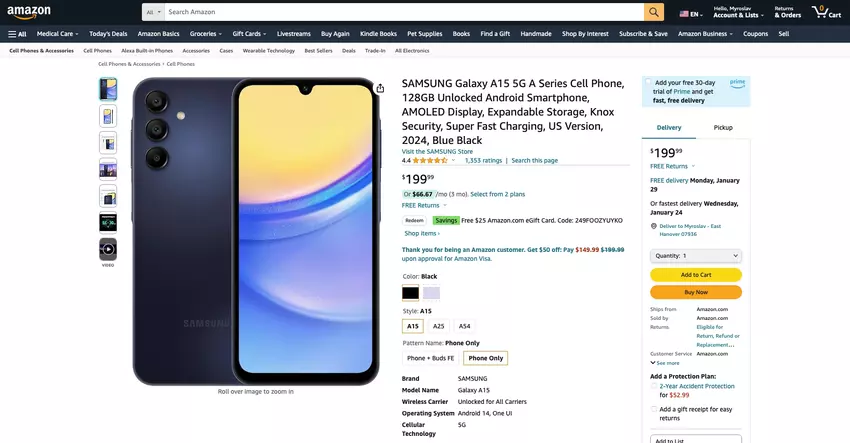 Samsung Galaxy A15 5G op Amazon: een smartphone met 90Hz AMOLED-scherm en Dimensity 6100+ chip met $25 korting