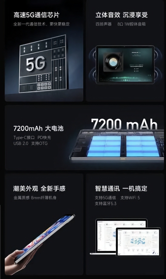 De noviteit heeft een 10,4-inch LCD-scherm met een resolutie van 2K en een helderheid van 280 nits. De gadget draait op een octa-core 6-nanometer MediaTek Kompanio 900T processor in combinatie met 6/8/12 GB RAM en tot 512 GB opslagruimte. De tablet wordt aangedreven door een 7200 mAh batterij. De noviteit heeft een 13 MP + 8 MP hoofdcamera en vier luidsprekers. Lenovo M20 5G wordt geleverd met een 5G-modem en ondersteuning voor WiFi 5.
