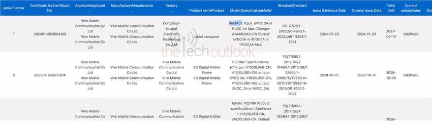 vivo werkt aan de iQOO Pad Air tablet. De noviteit is nu gespot in de 3C-database.
