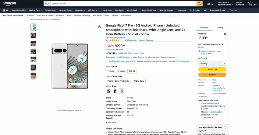 Google Pixel 7 Pro met 512 GB opslagruimte kan worden gekocht op Amazon met een korting van $400