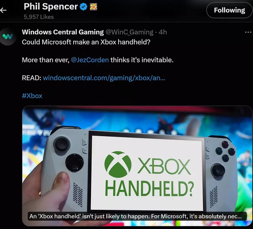 Dergelijke informatie is al eerder in de media verschenen, maar het bericht van Jez Corden met een link naar het artikel werd geliked door het hoofd van Xbox Phil Spencer.