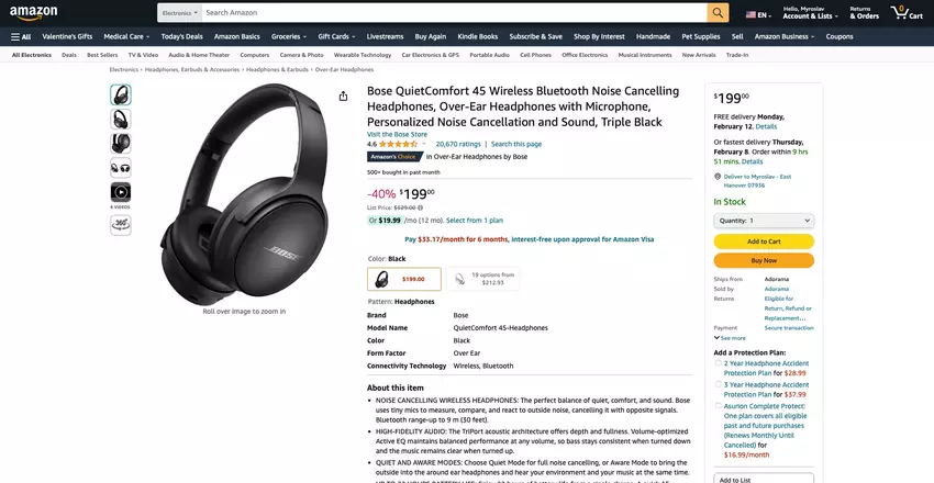 Bose QuietComfort 45 op Amazon: draadloze hoofdtelefoon met ANC en tot 22 uur autonomie voor $129 korting