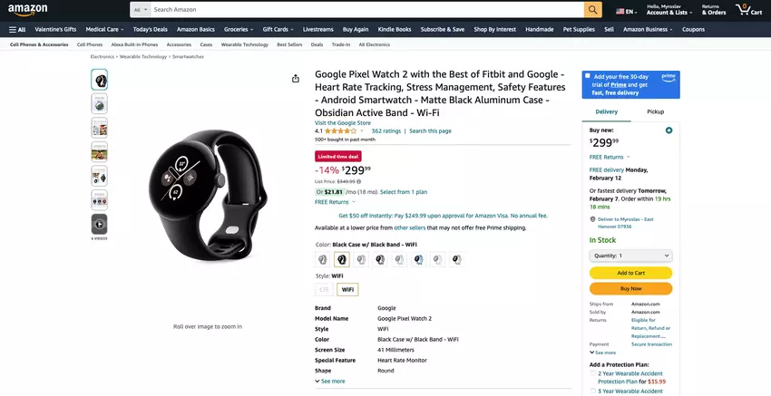 Google Pixel Watch 2 kan worden gekocht op Amazon met een korting van $50