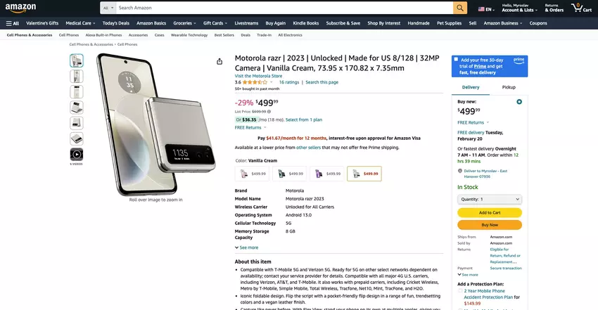 We hebben het over het model Razr (2023). Het toestel kost nu check price on amazon. De smartphone is verkrijgbaar in vier kleuren: Sage Green, Cherry Blossom, Summer Lilac en Vanilla Cream.