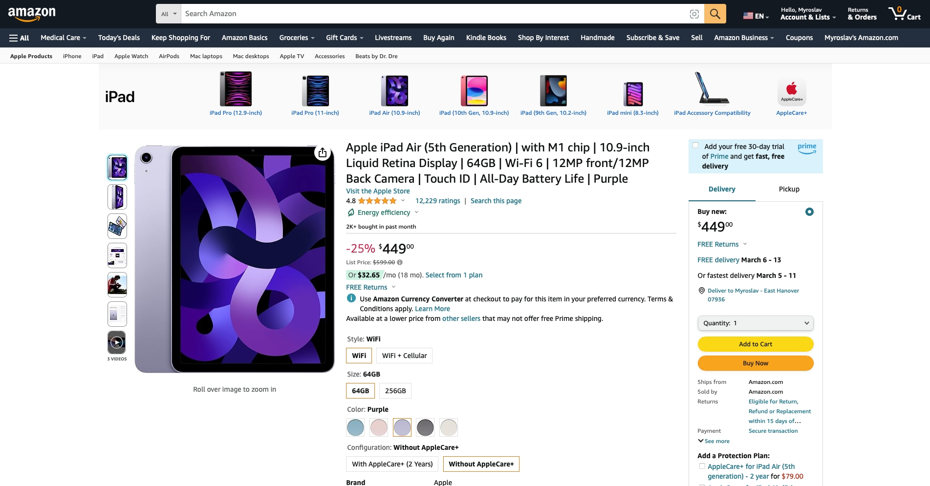 - iPad Air 5, 64 GB (Wi-Fi) - check price on amazon.