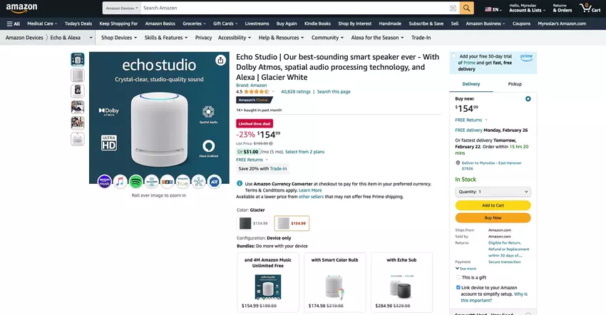 Amazon is begonnen met de verkoop van de Echo Studio slimme speaker met korting.