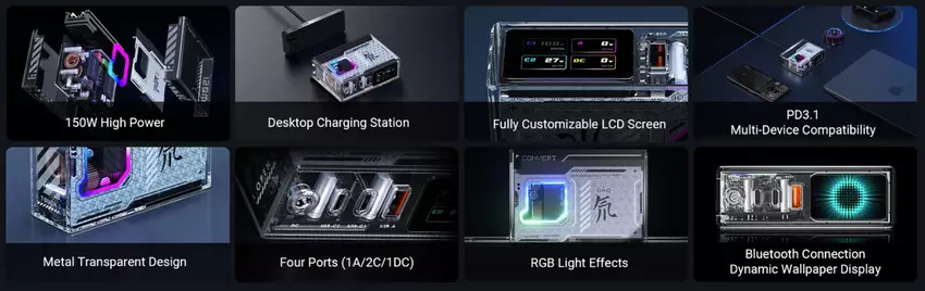 De nieuwigheid heeft Bluetooth, waardoor je de lader kunt verbinden met je smartphone en de achtergrondverlichting kunt aanpassen via de Goper-app. Het apparaat ondersteunt verschillende beschermingsprotocollen en een maximaal vermogen van 150W. Het apparaat wordt geleverd met USB-C naar USB-C en DC naar DC kabels.