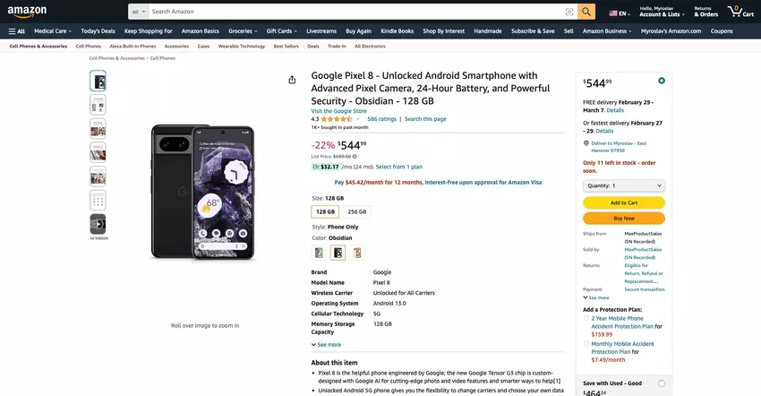 - Google Pixel 8, 128 GB - $577.64 $699.00, -17%.