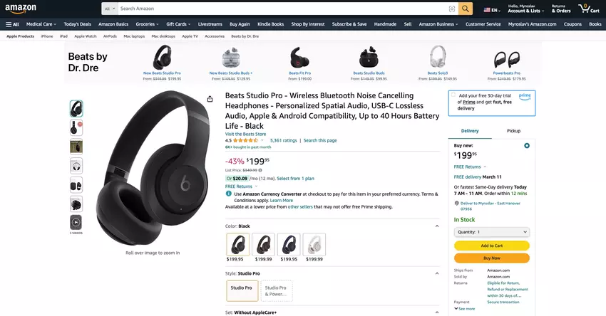 Beats Studio Pro op Amazon: draadloze hoofdtelefoon met ANC, Spatial Audio en een batterijlevensduur tot 40 uur voor $150 korting