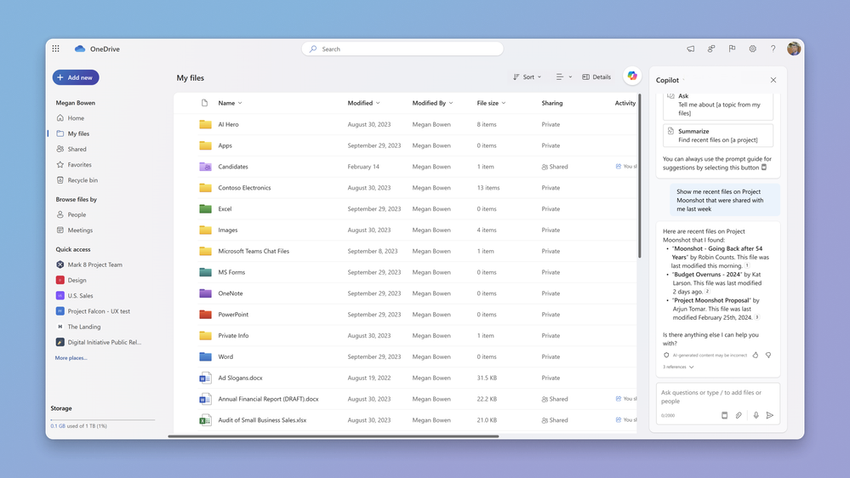 De optie met Copilot zal worden ingebouwd in de webversie van OneDrive, evenals bestandsviewers in Microsoft Teams, SharePoint en OneDrive zelf. Enterprise- en onderwijsklanten met een abonnement op Copilot voor Microsoft 365 krijgen in april toegang tot de tool.