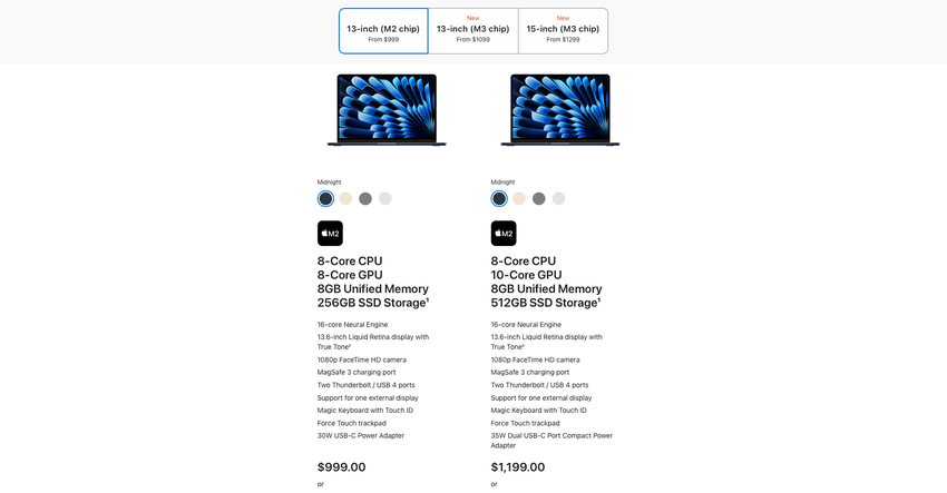 Nu is de goedkoopste laptop van Apple de 13-inch MacBook Air van vorig jaar met de M2-chip. Het bedrijf heeft het apparaat in de verkoop gehouden, maar de prijs verlaagd. De basisversie kost nu 999 dollar.