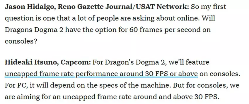 Dragon's Dogma 2 game director Hideaki Itsuno heeft bevestigd dat de game alleen op PC zal draaien met 60 FPS of hoger.