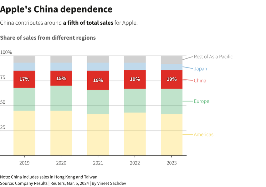 Apple heeft in de eerste zes weken van 2024 24% van de iPhone-verkopen verloren door de toegenomen concurrentie van binnenlandse rivalen, waaronder Huawei.