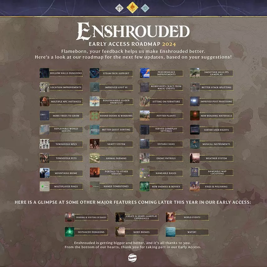 In 2024 moet Enshrouded veel nieuwe functies, mechanics, vijanden en nog veel meer hebben. De ontwikkelaars merkten op dat veel van hun ideeën overeenkomen met de wensen van gamers, dus ze hebben vertrouwen in de juistheid van hun acties.