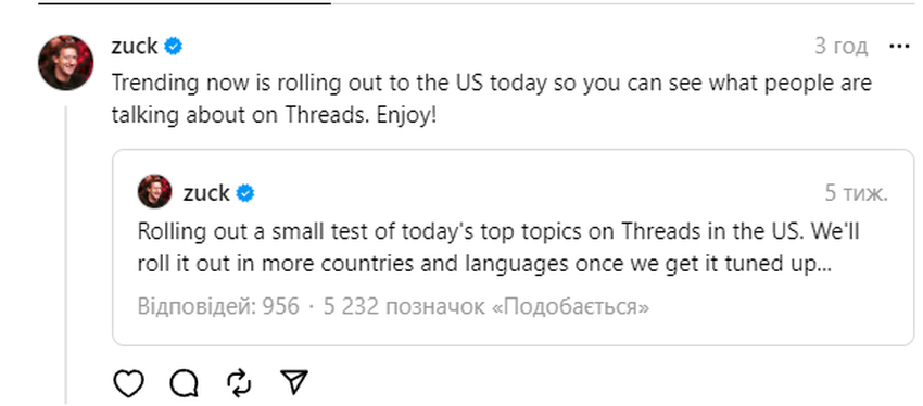 Trending wordt nu weergegeven op de Threads zoekpagina en tussen berichten in de feeds van gebruikers.