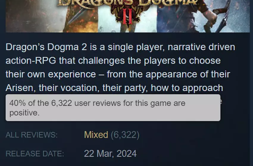 De release van Dragonʼs Dogma 2 stuit op harde kritiek op de pc-versie van het spel: gebruikers hebben de rating van de RPG op Steam verlaagd