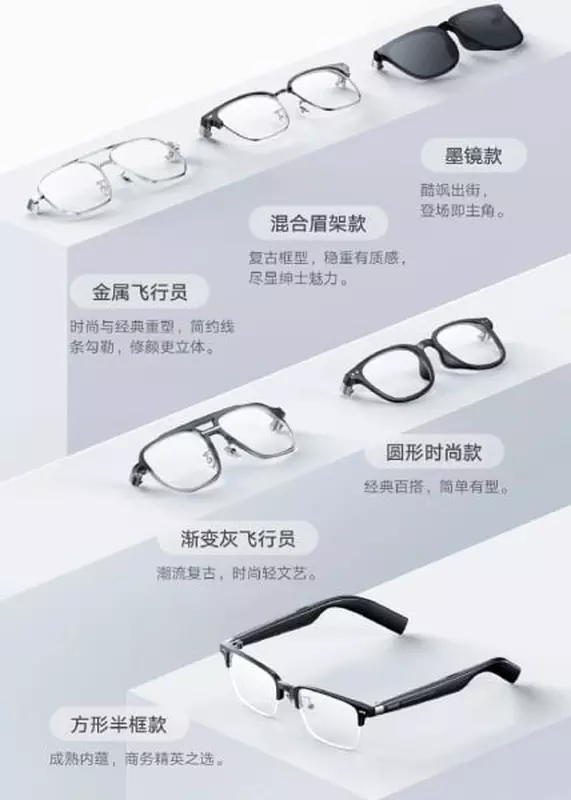 Het model kreeg de naam MiJia Smart Audio Glasses. De nieuwigheid kreeg zes verschillende monturen en een technologie van luchtgeleiding van geluid. In de bril zitten ultrasone luidsprekers die een algoritme gebruiken voor het synthetiseren van geluidsholtes. De nieuwigheid heeft een systeem voor ruisonderdrukking van geluid tijdens gesprekken, evenals speciale sensoren die de positie van de gadget herkennen. Als je bijvoorbeeld je bril afzet, wordt de muziek automatisch gepauzeerd.