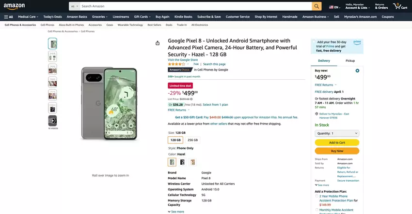 - Pixel 8, 128GB (Hazel, Obsidian, Rose) - $589.97 $699.00, -16%.
