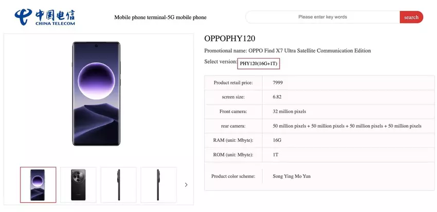 De OPPO Find X7 Ultra met satellietverbinding is al beschikbaar op de website van de provider China Telecom. De smartphone heeft 1 TB geheugen en kost $1110. Wanneer de verkoop van de noviteit begint, is nog niet bekend.