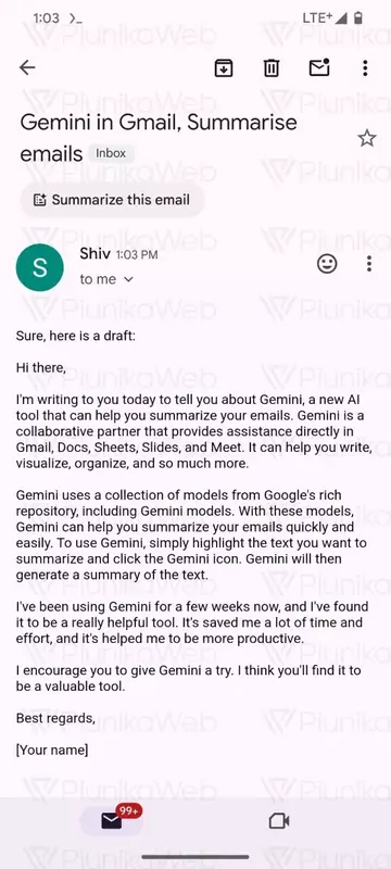 Volgens de gegevens verzameld door PiunikaWeb en de AssembleDebug coder, zal de Gmail app op Android een knop hebben om "deze e-mail samen te vatten". Hoewel er geen officiële bevestiging van Google is, kan de functie deel uitmaken van een toekomstige update.