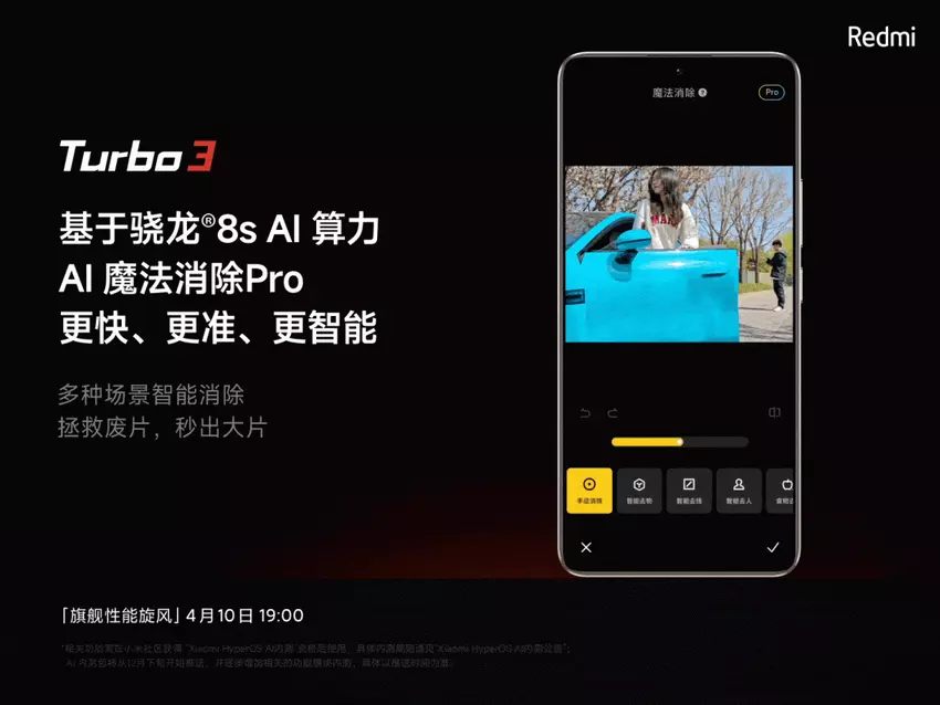 De tweede interessante functie is AI Magic Elimination Pro, een op AI gebaseerde fotobewerkingstool die automatisch ongewenste elementen uit foto's verwijdert. Het werkt ongeveer hetzelfde als Magic Eraser in Google Pixel smartphones, en dankzij het gebruik van de Snapdragon 8s Gen 3 chip zijn deze bewerkingen sneller en nauwkeuriger.