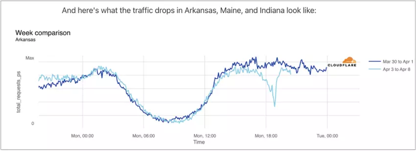 Zelfs in staten met gedeeltelijke verduisteringen, zoals Massachusetts en Kansas, was er een merkbare afname van het verkeer omdat meer dan 85% van de zon in bepaalde gebieden werd geblokkeerd. Over het algemeen daalde het verkeer in de VS slechts met 8% en de HTTP-verzoeken met 12%.