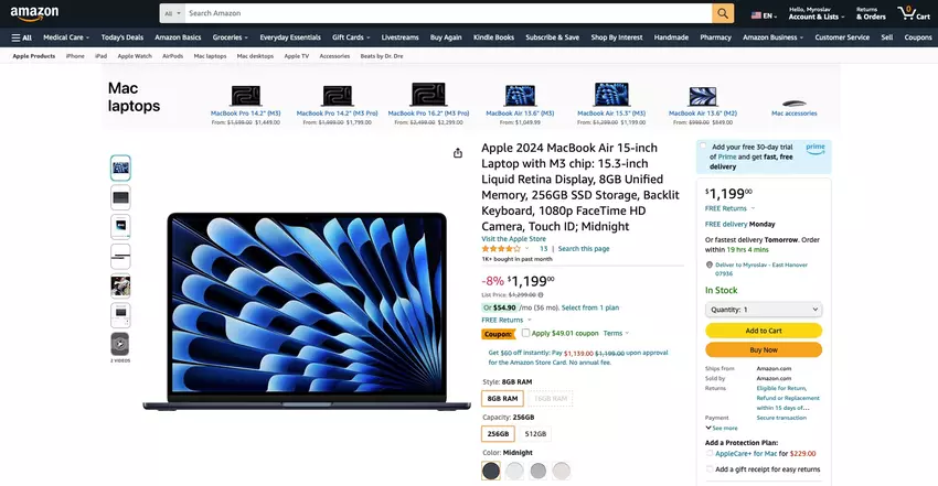 15-inch MacBook Air met M3-chip verkrijgbaar voor € 150 korting op Amazon