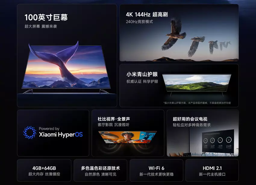 Xiaomi heeft de 100-inch Redmi MAX TV met 144Hz-scherm en HyperOS onthuld