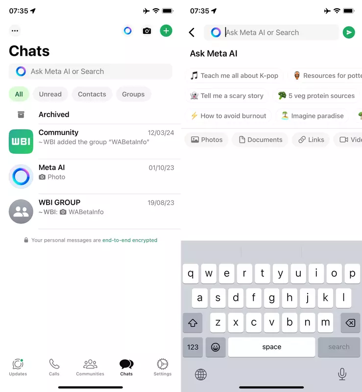 Het is belangrijk op te merken dat de Meta chatbot onafhankelijk zal werken en niet zal worden gekoppeld aan de correspondentie van gebruikers in WhatsApp. Meta AI is momenteel geïntegreerd in de zoekbalk bovenaan de app. Alles wat gebruikers in de zoekbalk typen, blijft privé totdat de gebruiker een zoekopdracht naar de Meta chatbot stuurt. Naast de mogelijkheid om te zoeken naar specifieke inhoud in hun gesprekken, stelt de zoekbalk gebruikers nu in staat om direct contact op te nemen met de Meta AI chatbot.