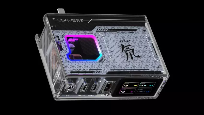 Het merk Red Magic is gespecialiseerd in gaming gadgets, dus de lader erft hun opvallende ontwerp. De behuizing is voorzien van een kleuren touchscreen display dat real-time stroominformatie geeft. Daarnaast wordt het apparaat aangevuld met een heldere RGB-achtergrondverlichting.