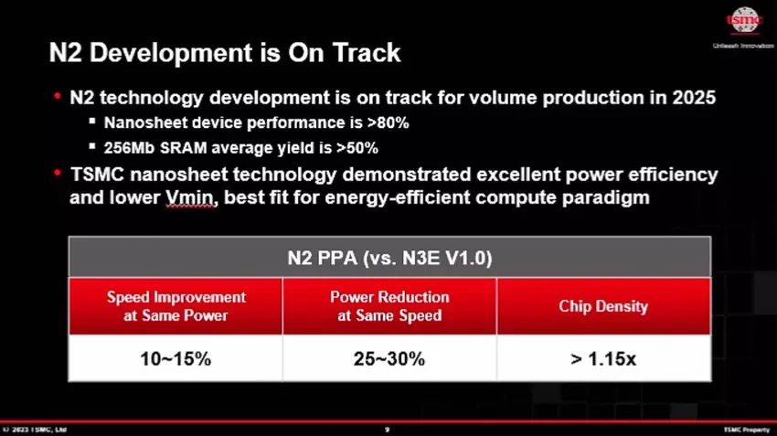 Ondanks het hogere aantal transistors kan een chip op basis van de 2nm-procestechnologie tot 30% minder stroom verbruiken, terwijl de prestaties tot 15% hoger liggen dan bij een 3nm-chip.
