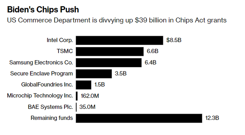 De regering Biden is van plan om 6,4 miljard dollar subsidie te geven aan Samsung om de chipproductie in Texas te verhogen als onderdeel van een programma om de binnenlandse productie van halfgeleiders te ondersteunen.