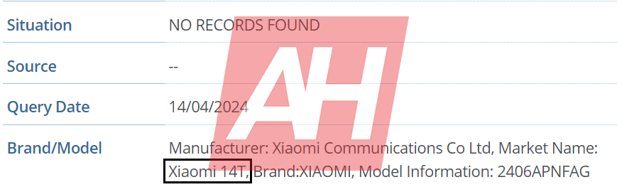 De Xiaomi 14T is onthuld in de database met modelnummer 2406APNFAG. Het toestel zal ook officieel verkrijgbaar zijn op de wereldmarkt. Er zijn nog geen verdere details over het model bekend.