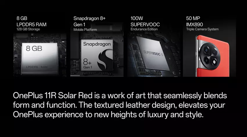 OnePlus 11R Solar Red Edition is een speciale versie van het reguliere OnePlus 11R model. De gadget is voorzien van een rood kunstlederen achterpaneel. De smartphone wordt geleverd met een 6,7-inch 120Hz AMOLED display, Snapdragon 8+ Gen 1 processor, 50 MP + 8 MP + 2 MP camera en een 5.000 mAh batterij met 100W snellaadondersteuning.