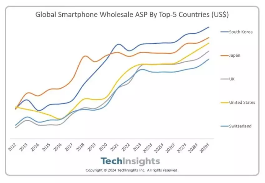 Zuid-Korea staat samen met Japan en de Verenigde Staten in de top 3 van landen met de hoogste gemiddelde verkoopprijs (ASP) voor smartphones. De grote populariteit van Samsung's opvouwbare Galaxy Flip en Fold telefoons heeft bijgedragen aan de stijging van de gemiddelde verkoopprijs in Zuid-Korea.