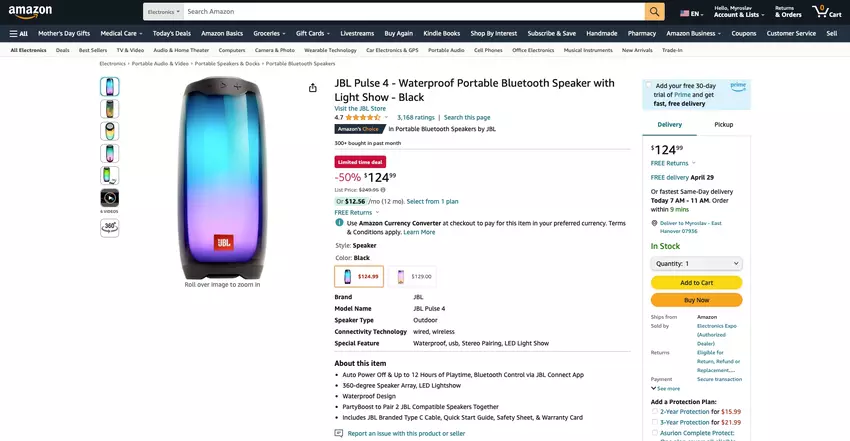JBL Pulse 4 op Amazon: draadloze luidspreker met achtergrondverlichting, IPX7-bescherming en een batterijlevensduur tot 12 uur voor $ 124,99 ($ 124 korting)