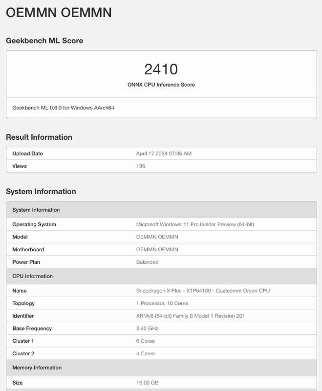 Volgens het lek zal de gadget draaien op een nieuwe 10-core processor Snapdragon X Plus (X1P64100). De SoC krijgt een maximale kloksnelheid van 3,42 GHz en twee clusters van 6 krachtige en 4 efficiënte kernen. Daarnaast wordt de chipset uitgerust met een ingebouwde X65-modem.